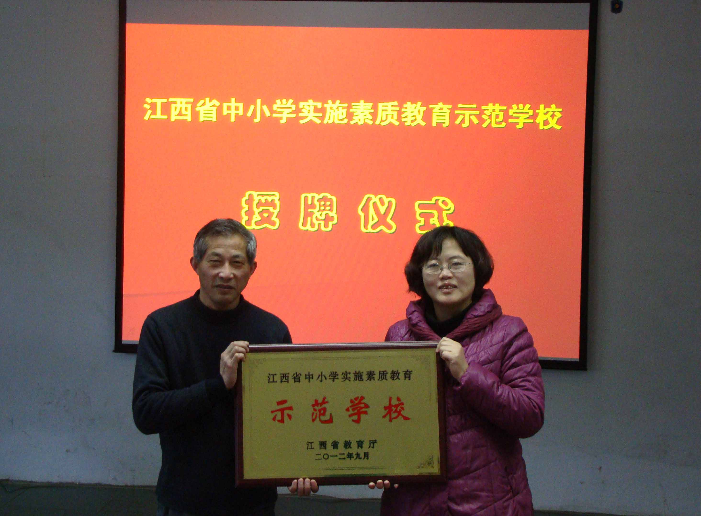 成为“江西省中小学实施素质教育示范学校”进行授牌。