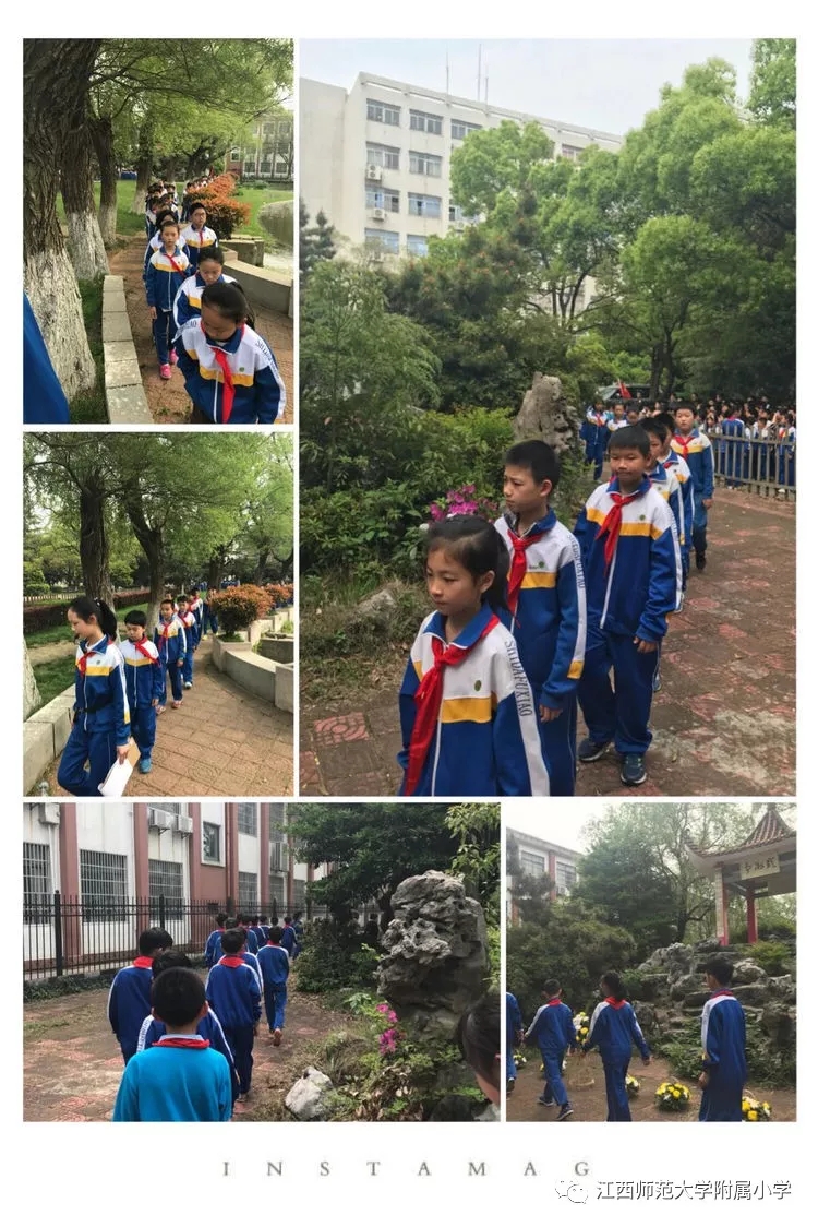 清明时节,李汶校长、邓信哲副校长、杨祖德副校长和德育主任秦小艳老师、大队辅导员张珺老师以及五年级全体师生,一齐来到显微湖,开展了"缅怀革命先烈 弘扬民族精神"清明祭扫活动。