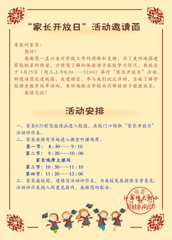 “家长开放日”活动邀请函