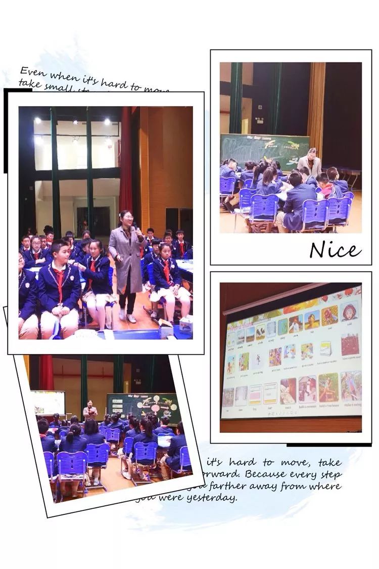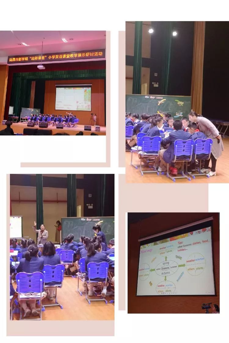 下午2点,全市4百余小英教师齐聚一堂,共享盛会。在市教研员闵聿婕老师简短的开场介绍之后,展示研讨活动正式拉开帷幕。钱娟老师和红谷一小六年级的孩子们进行了互相问候,其后,钱老师用一段时尚新颖的抖音视频开课,自然呈现了本节课的主题“the four seasons”,抓住了学生的注意力,有效的激发了孩子们的学习兴趣。紧接着,钱娟老师通过free talk引导孩子们运用已有知识从月份、色彩、服装、活动等方面谈论自己对四季的认知;再通过提供少量线索,让学生猜测老师最喜欢的季节入手进一步引导学生深入谈论自己及同伴最喜欢的季节。在全面激活学生的知识储备之后,钱老师通过播放英文视频展示文本材料,让学生完成阅读理解,整理出思维导图,再让学生根据思维导图进行小组合作,写出自己最喜欢的季节及原因。文本学习结束后,钱老师还运用流行的科幻电影《流浪地球》引出话题让学生进行思维发散,探讨如果地球上只有一个季节好不好,如果让你来进行改变,你想变出什么样的世界?最后,学生在钱老师的引领下自然而然的表达了热爱四季热爱生活的真实情感,完美的结束了本堂展示课。
