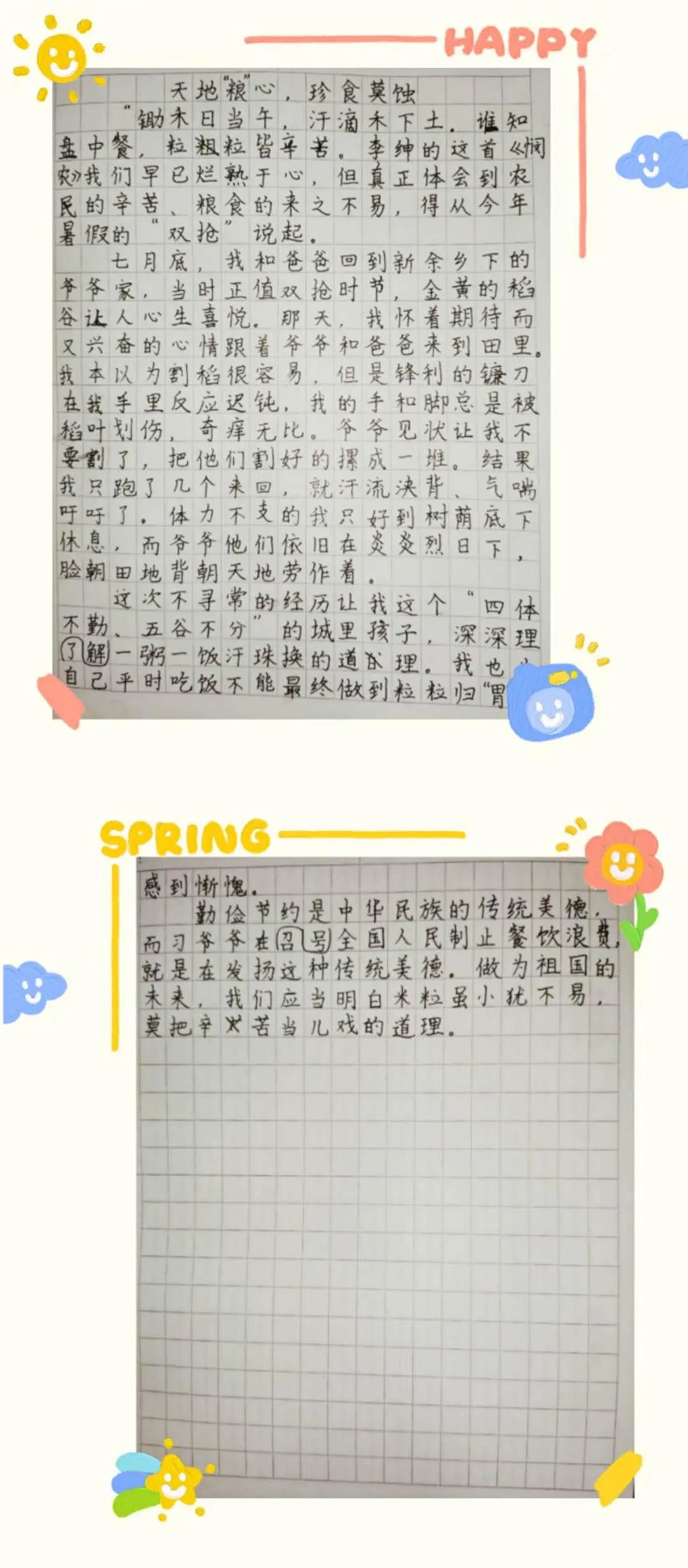 倡议一发出,全校师生立即采取行动,从自己做起,和家人一起,从一餐一饭开始,开展了设计张贴创意手抄报,饭后光盘不剩菜、记录身边节俭好人好事、写读后感等活动,用实际行动向身边人宣传厉行节约、杜绝浪费知识内容。