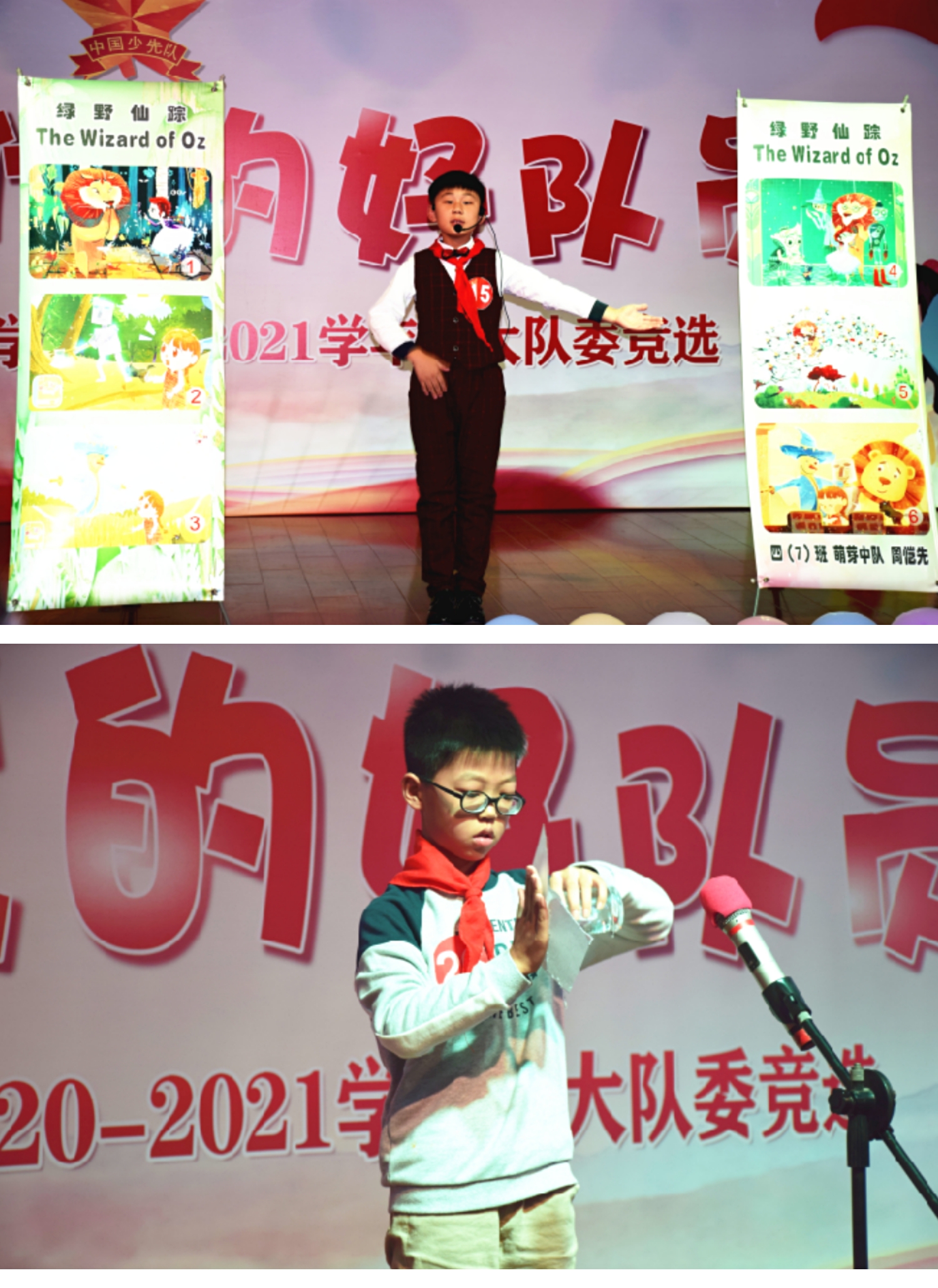 竞选活动中,候选人们自信满满、斗志昂扬。声情并茂的演讲,表达了自己对少先队工作的热情和决心,赢得了评委们及在场队员的阵阵掌声。
