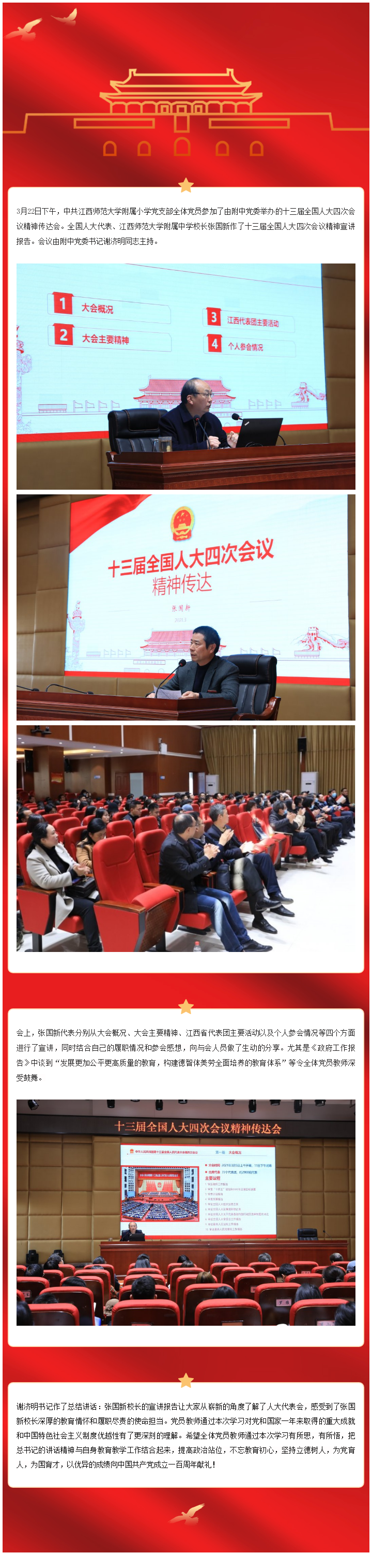 4虎 全体党员参加附中党委举办的十三届全国人大四次会议精神传达会