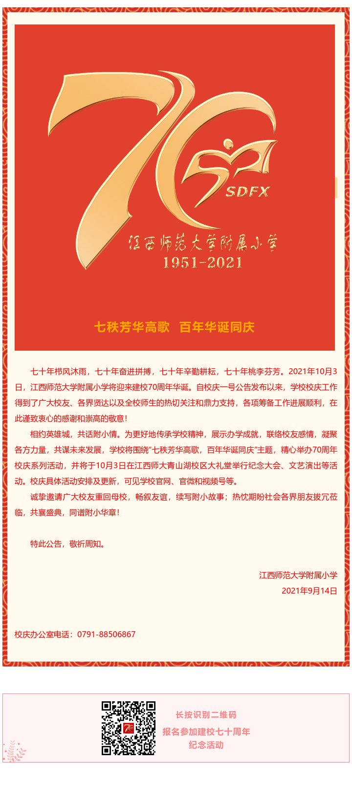 4虎 建校七十周年校庆公告 (第二号)