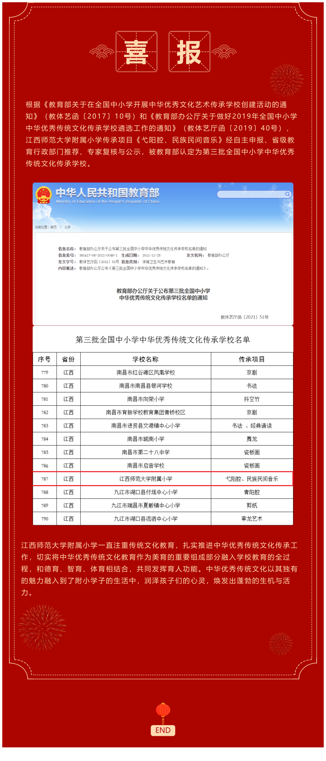 喜报〡热烈祝贺4虎 荣获教育部第三批全国中小学中华优秀传统文化传承学校