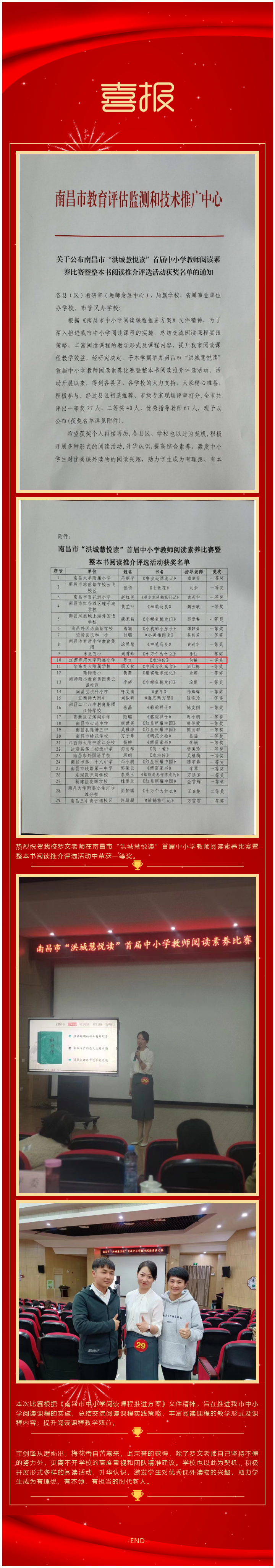 喜报〡热烈祝贺4虎 教师在南昌市“洪城慧悦读”首届中小学教师阅读素养比赛暨整本书阅读推介评选活动中荣获一等奖